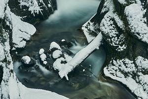 Water rushes over stones, paying no heed to the PNW Winter's chill. Taken at Mount Rainier National Park.